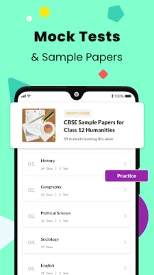 The Arts Class 11 and Class 12 App provides a comprehensive preparation study package for the students studying for exams. It provides access to an online test series for finals Main with 12 chapter-wise mock tests by a premier institute of the country. Along with that, it provides past or previous year papers with detailed solutions in the form of online tests, which a student can attempt to practice the paper as per the pattern of the real examination.