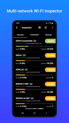 ⭐️ Detailed info on wireless access points: network name, MAC address, channel, signal level, security, and more
