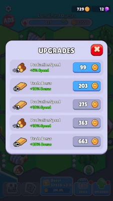 đź’° INVEST IN THE FUTURE: You can also buy upgrades for resource production speed and greater profit. Upgrades apply to all facilities producing one type of material, and also carry across levels in the game, so you get to keep the benefits.