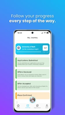 View your progress on your personal timeline and track your individual university applications with the option to view/download offers and e-sign documents. You’ll even be notified as soon as one of your chosen institutions responds. After accepting an offer, you’ll initiate your countdown, letting you know how many days are left until you start your course.