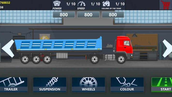 Excellent 2D graphics, detailed trucks and cars, Working headlights for night trips, customization of trucks and cars is also available to you, you can change the colors, wheels and tires of cars.